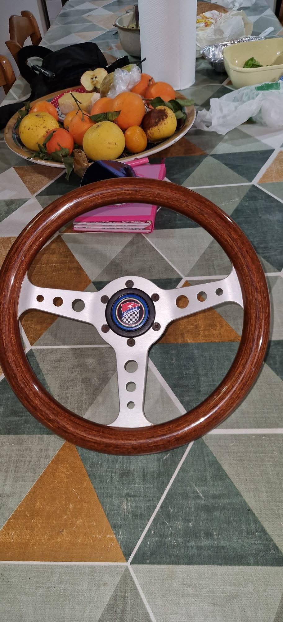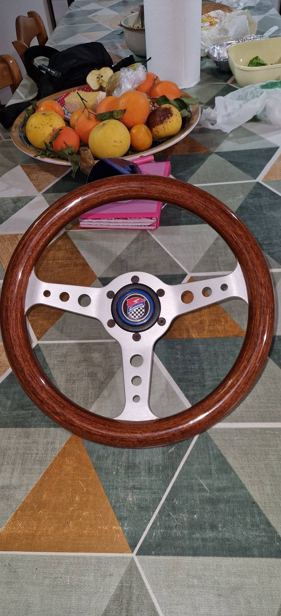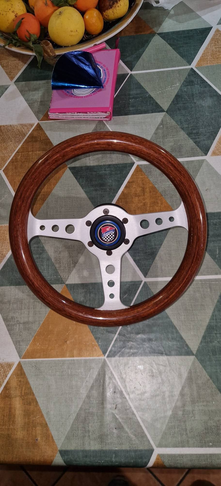 Selling a new sports steering wheel with hub and Giannini button, diameter 31 cm for Fiat 126 and derivatives. —Vendo volante sportivo nuovo con mozzo e pulsante Giannini, diametro 31 cm per Fiat 126 e derivate.