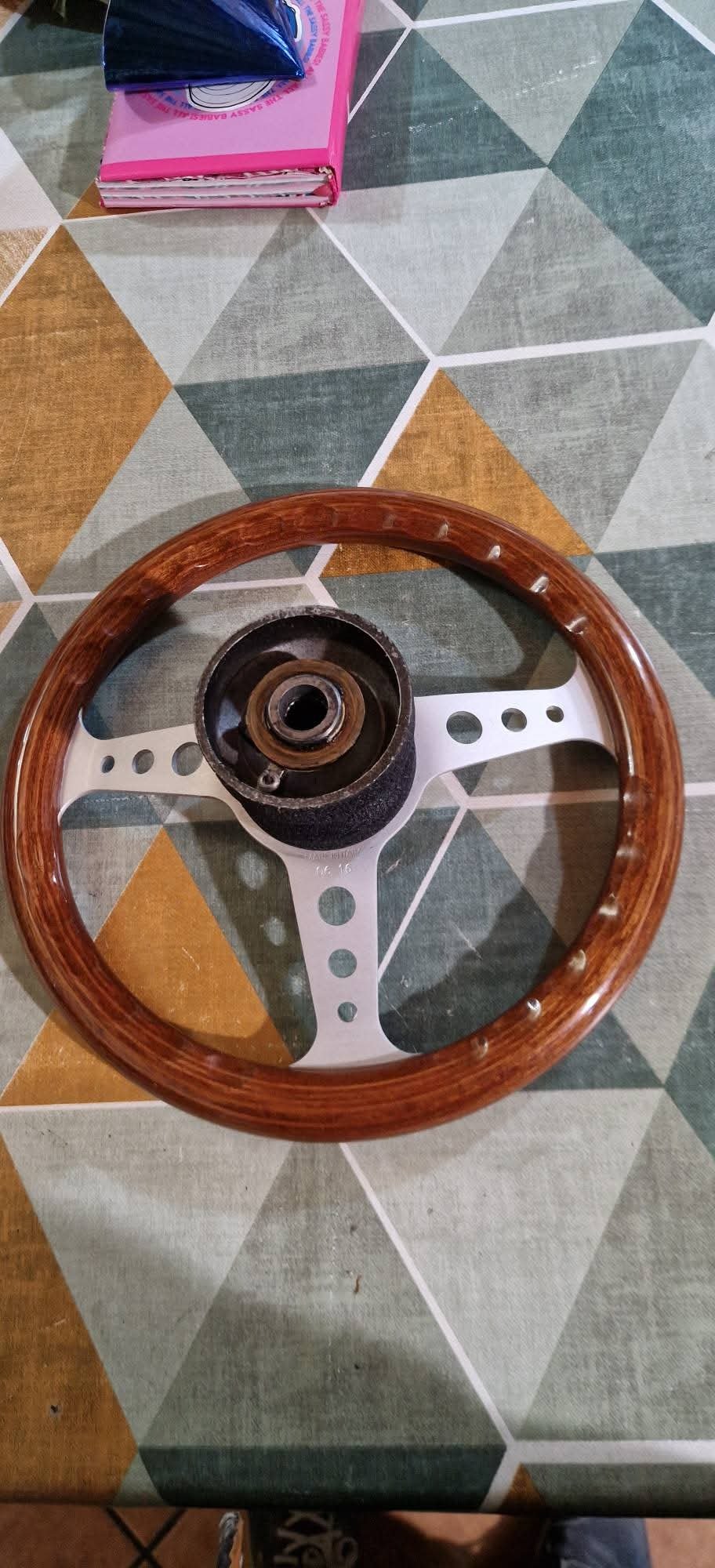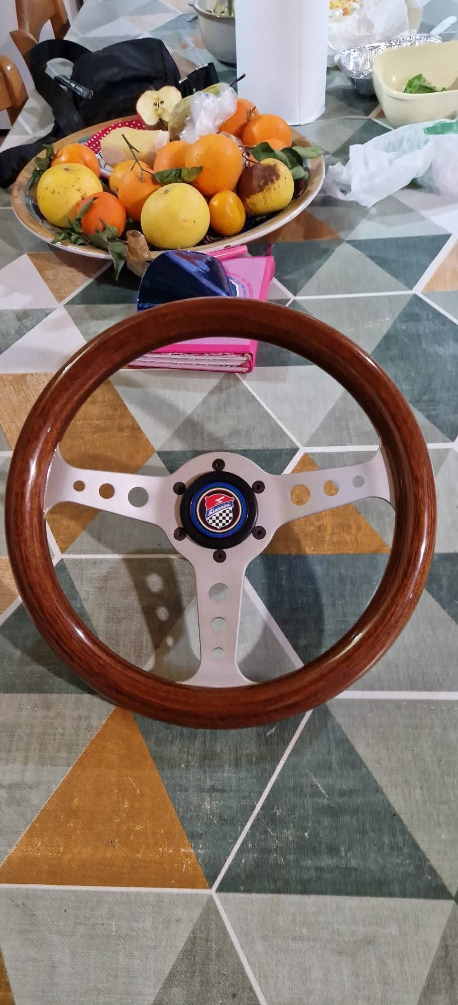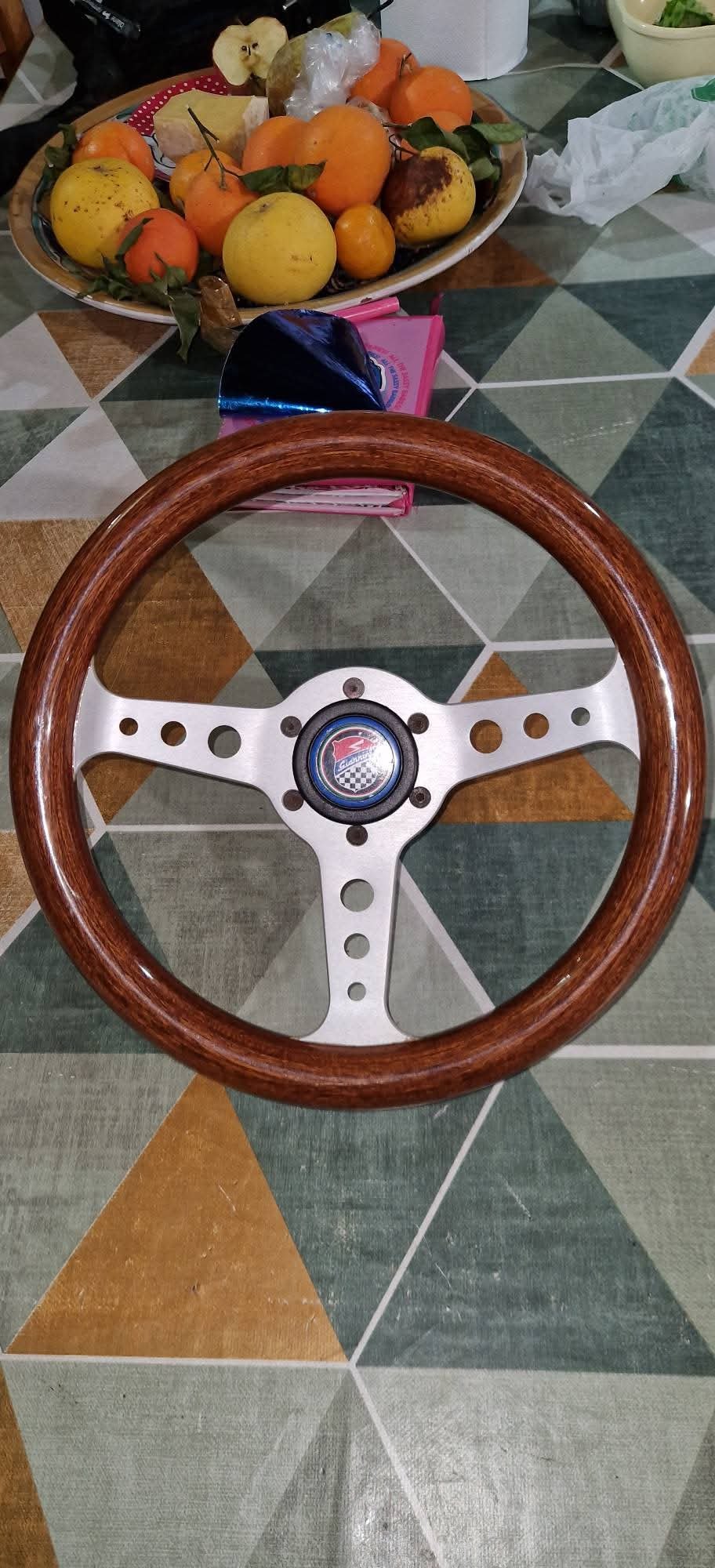 Selling a new sports steering wheel with hub and Giannini button, diameter 31 cm for Fiat 126 and derivatives. —Vendo volante sportivo nuovo con mozzo e pulsante Giannini, diametro 31 cm per Fiat 126 e derivate.